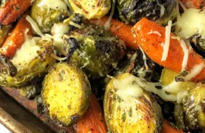parmesan roasted brussel sprouts and carrots 158145778