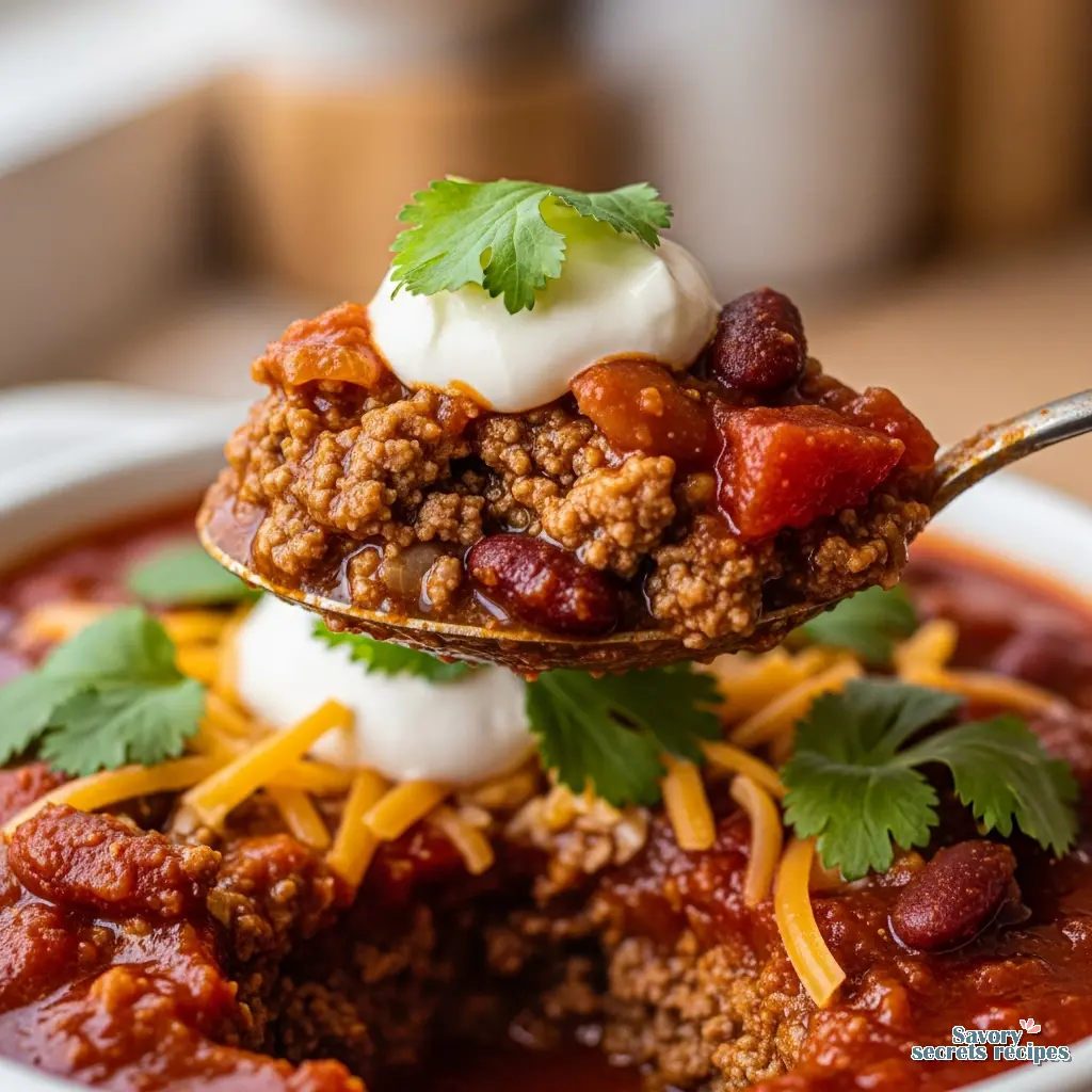 Now for the secret ingredient. I add a tablespoon of unsweetened cocoa powder. I know this sounds strange, but it works. The cocoa adds earthy, rich undertones that make this the best classic chili recipe ever. We also finish with a splash of apple cider vinegar right at the end. The acidity brightens up the flat flavors and cuts through the richness of the beef broth.