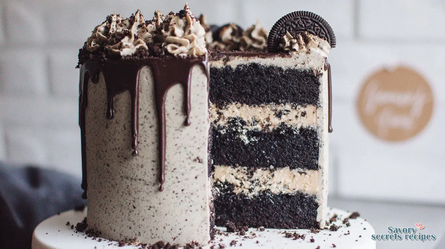 Ultimate Cookies and Cream Cake: Rich dark chocolate layers, creamy cookies & cream filling, Oreo buttercream, and a chocolate drip.