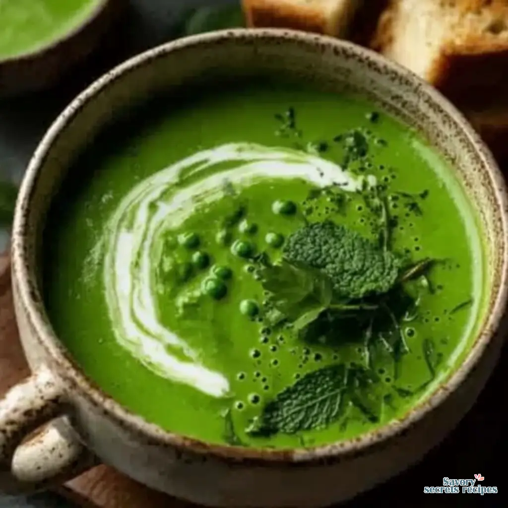 When plating, pour the vibrant green soup into wide bowls. Add a swirl of crème fraîche. The rich, slightly tangy cream cuts through the sweet peas beautifully. Garnish with a few delicate pea shoots and serve it with some crusty garlic toast. It is incredibly moreish. Your family will be genuinely impressed. If you enjoy this combination, you might also like my pea mint and asparagus soup which adds another layer of spring flavour.