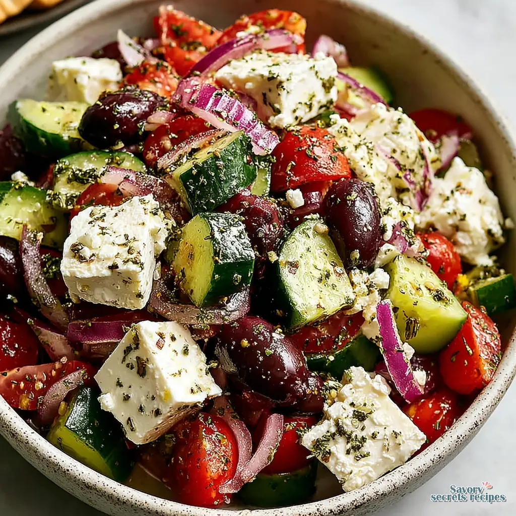 I didn’t always know how to make this right. Growing up in California, my idea of this dish was a sad, watery bowl of iceberg lettuce topped with black rings from a can and pre-crumbled cheese that tasted like chalk. It wasn’t until a family trip to the Mediterranean that I realized I’d been eating a lie. We sat down at a tiny seaside taverna, and the waiter brought out a shallow bowl bursting with vibrant reds, deep greens, and a massive slab of creamy cheese right on top. No lettuce in sight.