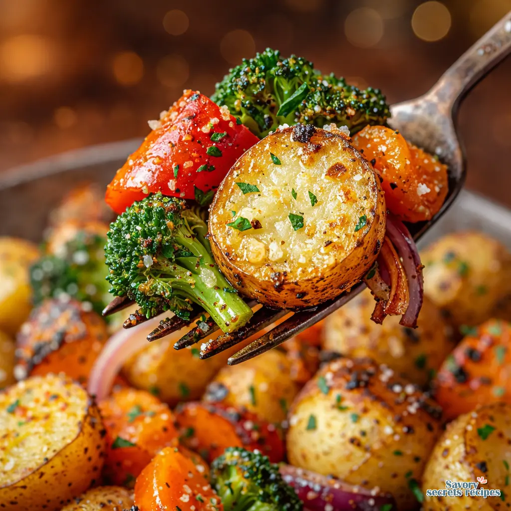 Your potatoes should pierce easily with a fork and have golden, wrinkled skins. The broccoli florets should be bright green with slightly charred, crispy tips. The red onions will turn translucent and take on a deep purple hue with caramelized edges. Cherry tomatoes, if you add them, should be blistered and just starting to burst, releasing their juices.