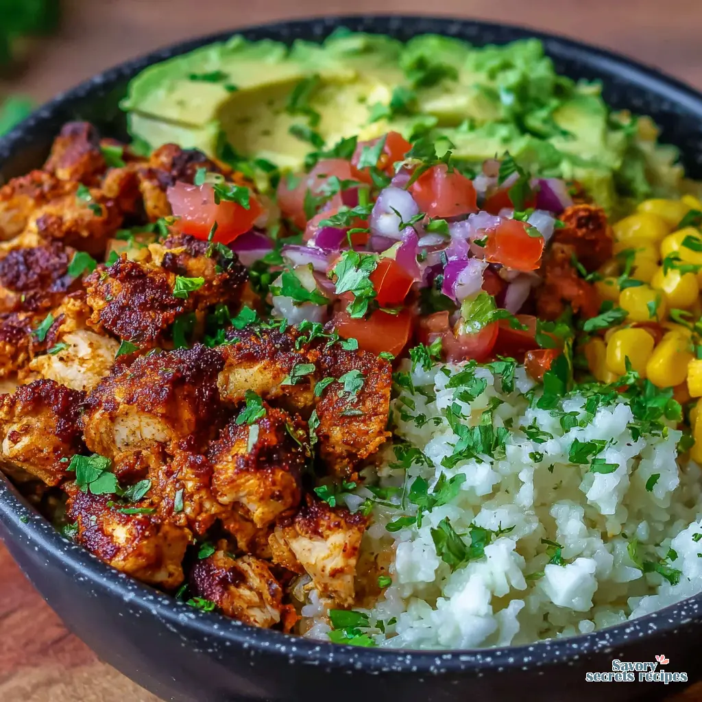 High Protein Air Fryer Chicken Taco Bowl