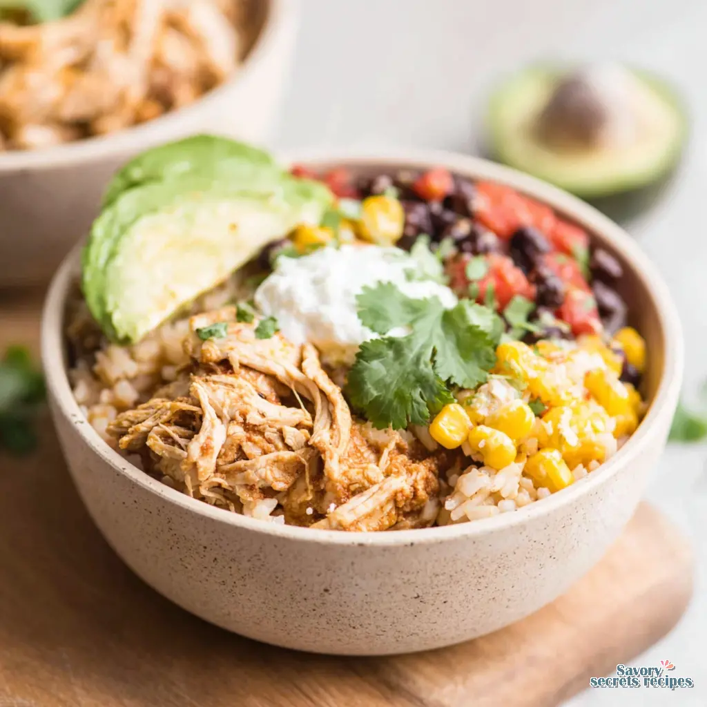 Definitely! For a slow-cooked option, place your seasoned chicken breasts in a slow cooker with about 1/2 cup of water or broth. Cook on low for 3-4 hours or high for 2-3 hours until the chicken is tender enough to shred easily. It’s perfect for feeding a crowd and making a delicious protein packed Mexican bowl.