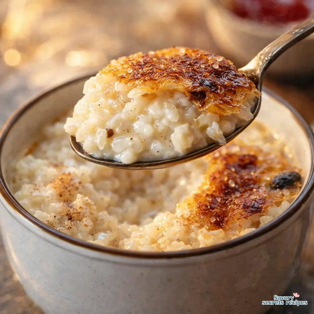 Savor a classic comfort dessert with this creamy homemade rice pudding, baked to perfection with that traditional golden skin you love.