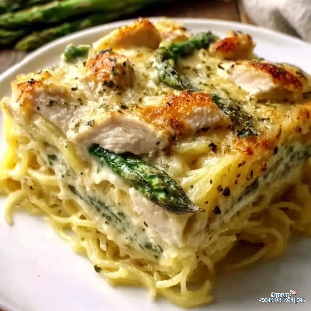 Lemon Chicken Asparagus Spaghetti Squash Bake