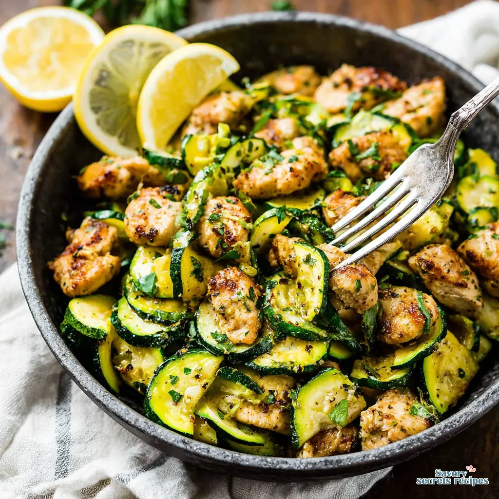 Easy Lemon Garlic Chicken Zucchini: A delicious, healthy, low-carb meal ready fast! Great for weeknights & picky eaters.